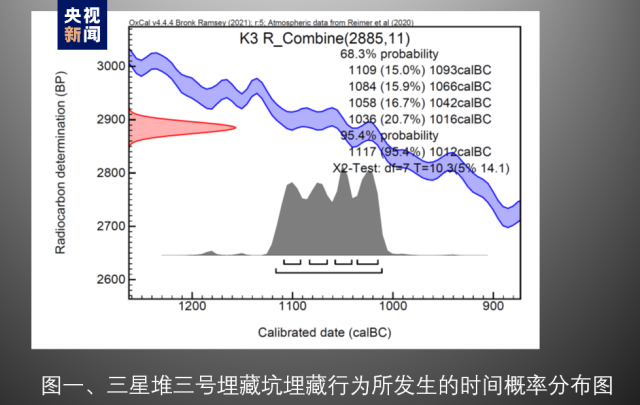 三號坑埋藏行為所發(fā)生的時間:落在公元前1117年—公元前1012年之間的概率是95.4%,落在公元前1109年到公元前1016年之間的概率是68.3%;