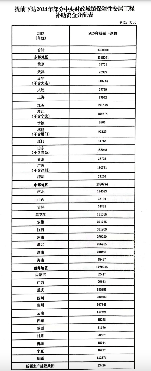 央視網(wǎng)消息:據(jù)財(cái)政部網(wǎng)站消息,財(cái)政部發(fā)布通知,為進(jìn)一步加快轉(zhuǎn)移支付預(yù)算執(zhí)行進(jìn)度,提高地方預(yù)算編制的完整性,現(xiàn)提前下達(dá)2024年部分中央財(cái)政城鎮(zhèn)保障性安居工程補(bǔ)助資金,共計(jì)425億元。該項(xiàng)資金待2024年預(yù)算年度開始后,按規(guī)定程序撥付使用,具體使用范圍按照相關(guān)資金管理辦法執(zhí)行。