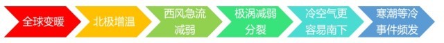 赤道與極地之間存在巨大溫差,這種差異促使極圈外圍形成了一圈強勁的西風,環(huán)繞在極地周圍,它被稱之為西風急流。西風急流就像“圍欄”一樣,約束著極地的冷空氣。穩(wěn)定的極渦被強大的西風急流限制在北極地區(qū),在全球變暖背景下,北極地區(qū)增溫速度是全球的2-3倍。北極地區(qū)增溫,與中低緯度氣溫差減弱,難以維持強大的西風急流,極渦內的冷空氣變得“躁動不安”,更容易分裂南下。北極來的冷空氣,其溫度遠遠低于我們生活的中低緯度地區(qū),多次出現(xiàn)的寒潮天氣讓我們感到“冷冷冷”。