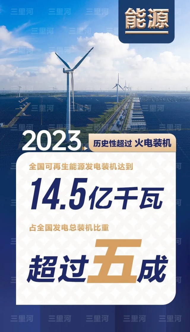 2023年,全國可再生能源發(fā)電裝機達到14.5億千瓦,占全國發(fā)電總裝機比重超過五成,歷史性超過火電裝機。