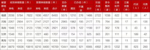 截至2023年12月31日,各督察組共收到群眾來(lái)電、來(lái)信舉報(bào)19815件,受理有效舉報(bào)16700件,經(jīng)梳理合并重復(fù)舉報(bào),累計(jì)向相關(guān)省轉(zhuǎn)辦13441件。相關(guān)省已辦結(jié)或階段辦結(jié)11457件。其中,立案處罰1232家,立案?jìng)刹?5件;約談黨政領(lǐng)導(dǎo)干部623人,問(wèn)責(zé)黨政領(lǐng)導(dǎo)干部289人。