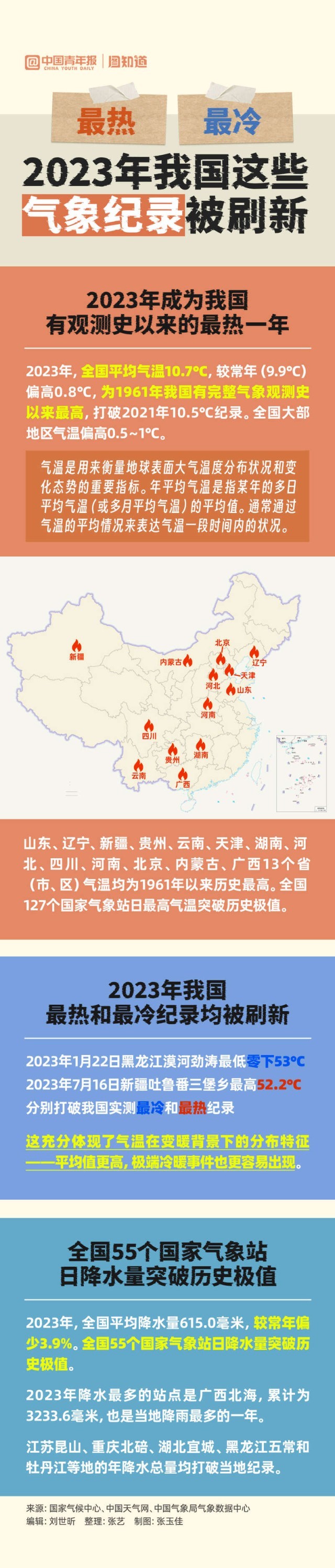 高溫、暴雨、寒潮……回顧2023年,你是否也感受到了天氣的不尋常?2023年,我國最熱和最冷紀錄均被刷新。這些變化也反映了氣溫在全球變暖背景下的分布特征——平均值更高,極端冷暖事件也更容易出現(xiàn)。我國是全球氣候變化的敏感區(qū)和影響顯著區(qū)。關注氣候變化,一起看圖了解。