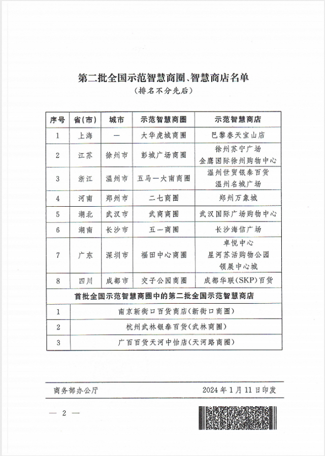 商務部公布第二批全國示范智慧商圈、智慧商店名單