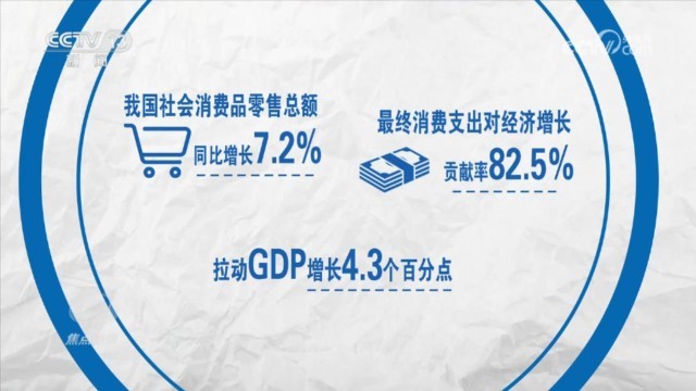 經(jīng)過短暫的波動(dòng),從7月份開始,消費(fèi)再次走出了企穩(wěn)回升的曲線。2023年,我國社會(huì)消費(fèi)品零售總額同比增長7.2%,最終消費(fèi)支出對(duì)經(jīng)濟(jì)增長貢獻(xiàn)率達(dá)到82.5%,拉動(dòng)GDP增長4.3個(gè)百分點(diǎn)。