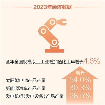 發(fā)展方式進一步轉(zhuǎn)變。截至2023年底,我國可再生能源發(fā)電裝機容量占比超過總裝機的一半,歷史性地超過火電。2023年我國新能源汽車產(chǎn)銷量居世界第一,電動載人汽車出口量同比增長67.1%,綠色低碳產(chǎn)品產(chǎn)量快速增長。