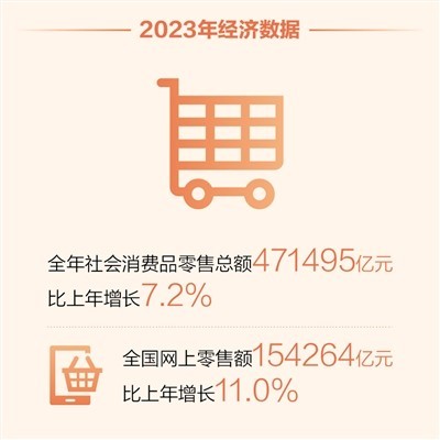 “展望2024年,超大規(guī)模市場的優(yōu)勢依然明顯,加之城鄉(xiāng)融合發(fā)展、消費結(jié)構(gòu)持續(xù)升級,為消費增長提供了廣闊空間。特別是醫(yī)療、健康等消費潛力有望進一步釋放?!笨盗x說,消費基礎(chǔ)不斷鞏固、消費亮點不斷涌現(xiàn)、促消費政策持續(xù)發(fā)力,對2024年消費走勢保持樂觀。