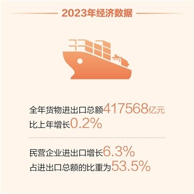 國際循環(huán)質(zhì)量和水平進一步提升。面對外需收縮等不利影響,我國加力推動外貿(mào)穩(wěn)規(guī)模、優(yōu)結(jié)構(gòu),出口實現(xiàn)正增長,國際市場份額保持總體穩(wěn)定。同時,積極拓展國際經(jīng)貿(mào)合作,2023年我國對共建“一帶一路”國家進出口總額比上年增長2.8%。