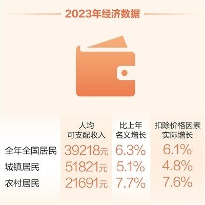 人民生活進一步改善。2023年,居民人均可支配收入同比實際增長6.1%,城鄉(xiāng)居民收入穩(wěn)定增長。電力、熱力、燃氣及水的生產(chǎn)和供應(yīng)業(yè)投資增長23%,農(nóng)業(yè)投資增長9.3%,快于全部投資,民生投入力度不斷加大。