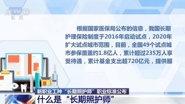日前,兩部門制定了長期照護(hù)師的國家職業(yè)標(biāo)準(zhǔn),并頒布施行。