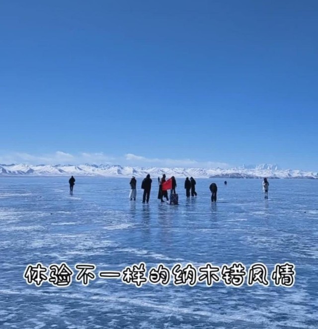 當前,納木錯正值限定“藍冰季”,一望無際的藍色冰面,遼闊而寧靜。來自全國各地的游客來到納木錯享受別樣的冰雪風(fēng)情。