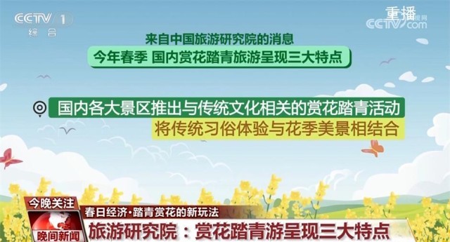 來自中國旅游研究院的消息,今年春季,國內(nèi)賞花踏青旅游呈現(xiàn)三大特點:首先,除了常見的牡丹、桃花、油菜花之外,紫荊花、櫻桃花、馬蘭花等特色花種也受到游客關(guān)注;其次,國內(nèi)各大景區(qū)推出與傳統(tǒng)文化相關(guān)的賞花踏青活動,將傳統(tǒng)習(xí)俗體驗與花季美景相結(jié)合;此外,游客也更加重視賞花旅途的舒適度和體驗性,特色品質(zhì)小團、私家團等賞花線路訂單增加不少。