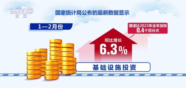 隨著增發(fā)國(guó)債項(xiàng)目的落地實(shí)施和支撐災(zāi)后應(yīng)急恢復(fù)重建資金的陸續(xù)下達(dá),基礎(chǔ)設(shè)施投資增速小幅回升。國(guó)家統(tǒng)計(jì)局公布的最新數(shù)據(jù)顯示,1—2月份,基礎(chǔ)設(shè)施投資同比增長(zhǎng)6.3%,增速比2023年全年加快0.4個(gè)百分點(diǎn)。其中,水利管理業(yè)投資增長(zhǎng)13.7%、教育行業(yè)投資增長(zhǎng)12.1%、基礎(chǔ)設(shè)施等民生補(bǔ)短板投資保持良好增長(zhǎng)態(tài)勢(shì)。