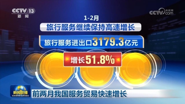 旅行服務增長勢頭迅猛。1—2月,旅行服務繼續(xù)保持高速增長,旅行服務進出口3179.3億元,增長51.8%,成為服務貿(mào)易第一大領域。