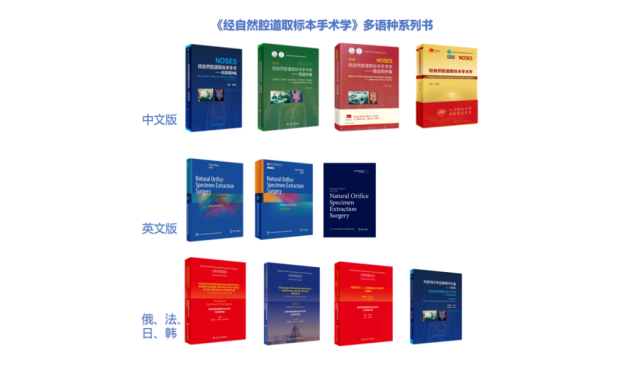 2023年,由人民衛(wèi)生出版社出版的以中文為主體,英、韓、日、俄、法相配套的五大語種NOSES手術系列專著《經(jīng)自然腔道取標本手術學》亮相第75屆法蘭克福國際書展,獲多個參展國高度評價。