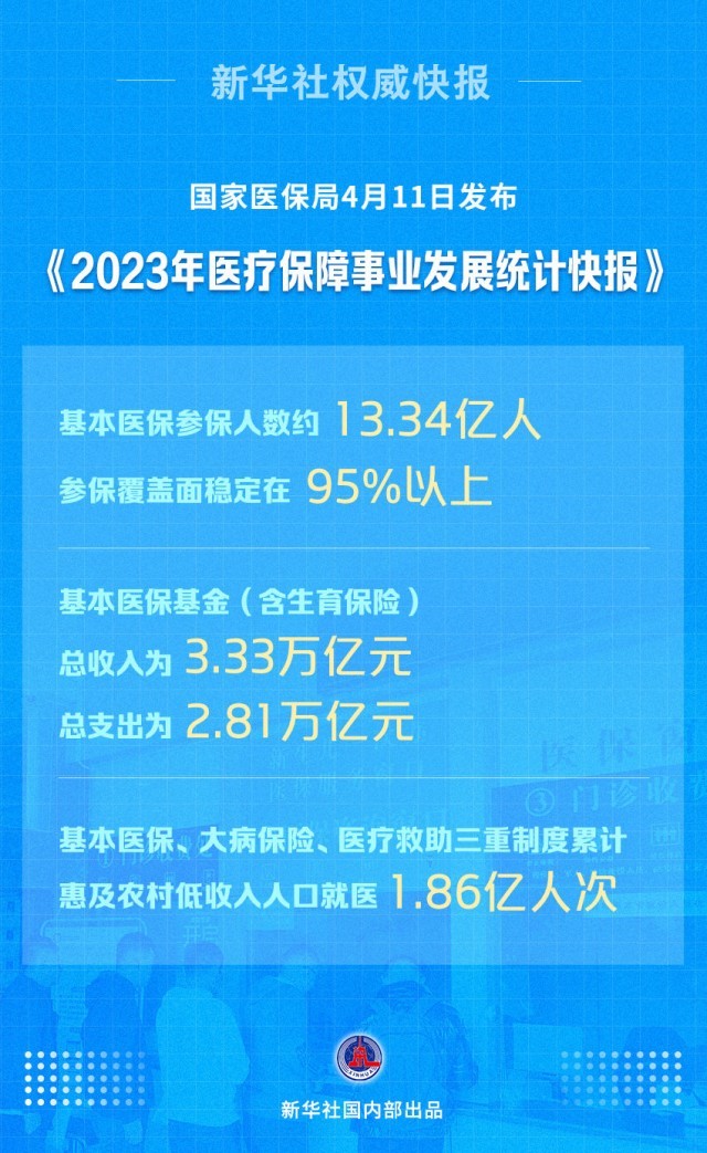 國(guó)家醫(yī)保局4月11日發(fā)布《2023年醫(yī)療保障事業(yè)發(fā)展統(tǒng)計(jì)快報(bào)》,從參保人員、醫(yī)?;鹗罩闆r、醫(yī)保助力鄉(xiāng)村振興、異地就醫(yī)直接結(jié)算等多個(gè)方面介紹2023年醫(yī)保事業(yè)發(fā)展相關(guān)情況。
