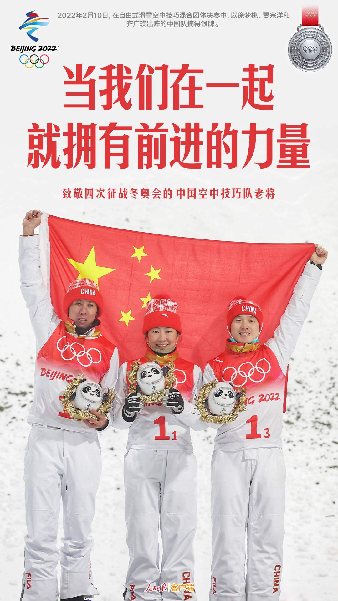 四次征戰(zhàn)冬奧會,三名老將攜手出戰(zhàn)。拼盡全力、互相鼓勵,當(dāng)我們在一起,就擁有前進的力量。致敬空中技巧三位老將,祝愿三位選手在接下來的單項賽中圓夢!
