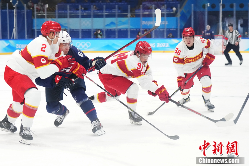 圖為冰球男子小組賽:中國隊對陣美國隊。中新社記者毛建軍攝