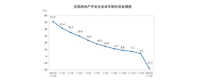 1—2月份,房地產(chǎn)開發(fā)企業(yè)到位資金25143億元,同比下降17.7%。其中,國內(nèi)貸款4105億元,同比下降21.1%;利用外資7億元,下降27.4%;自籌資金7757億元,下降6.2%;定金及預(yù)收款8027億元,下降27.0%;個人按揭貸款4124億元,下降16.9%。