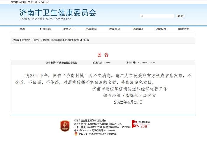 濟南:網(wǎng)傳“濟南封城”為不實消息