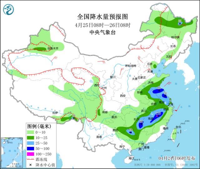 除了強降雨,黃河以南地區(qū)還將遭遇今年來最大范圍的強對流天氣,4月24日傍晚到夜間,河南、湖北、湖南、貴州等地將出現短時強降雨,局地還有8至9級的雷暴大風天氣,貴州還需警惕冰雹;25日強對流影響區(qū)域將東移,主要將集中在湖南、江西、江蘇等地。