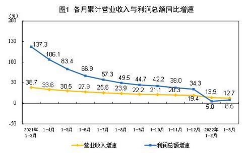 總體來看,一季度減稅降費(fèi)、助企紓困多措并舉,工業(yè)企業(yè)利潤保持平穩(wěn)增長。但也要看到,外部輸入性通脹壓力加大,新冠肺炎疫情多點(diǎn)散發(fā),給工業(yè)經(jīng)濟(jì)平穩(wěn)發(fā)展帶來諸多挑戰(zhàn),企業(yè)生產(chǎn)經(jīng)營困難增多。一季度,規(guī)模以上工業(yè)企業(yè)利潤增速比上年四季度回落3.8個(gè)百分點(diǎn),并且不同行業(yè)、不同類型企業(yè)間利潤分化明顯;工業(yè)企業(yè)營業(yè)收入增長放緩,工業(yè)產(chǎn)銷銜接水平下降,企業(yè)庫存高位運(yùn)行,中小企業(yè)成本壓力仍然較大。