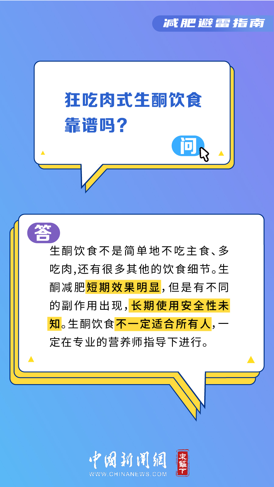減肥需遵循人體科學(xué)規(guī)律,盲聽盲信皆不靠譜。轉(zhuǎn)看這份減肥避雷指南,看看你減肥時都踩過哪些雷↓↓↓ (友情提示:過瘦與過胖都是不健康的,請依據(jù)自己的體重指數(shù)適度減肥哦~)