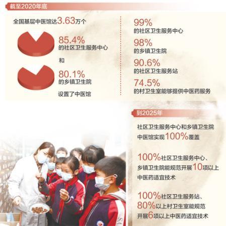 充分發(fā)揮中醫(yī)藥在基層健康服務中的獨特優(yōu)勢,中醫(yī)館的作用不容忽視。今年3月,國家中醫(yī)藥管理局等10部門聯(lián)合印發(fā)的《基層中醫(yī)藥服務能力提升工程“十四五”行動計劃》提出,到2025年,社區(qū)衛(wèi)生服務中心和鄉(xiāng)鎮(zhèn)衛(wèi)生院中醫(yī)館實現(xiàn)全覆蓋,鼓勵有條件的地方對15%的社區(qū)衛(wèi)生服務中心和鄉(xiāng)鎮(zhèn)衛(wèi)生院中醫(yī)館完成服務內涵建設。