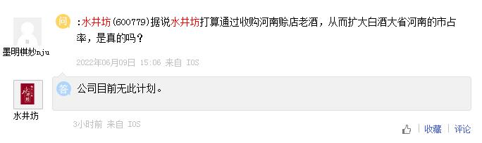 中新財(cái)經(jīng)6月20日電 針對“據(jù)說水井坊打算通過收購河南賒店老酒,從而擴(kuò)大白酒大省河南的市占率”的提問,水井坊6月20日在上證e互動平臺表示 ,公司目前無此計(jì)劃。(完)