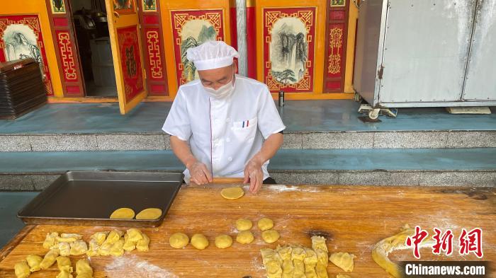 張潤明正在制作豆面餅?!铎o 攝