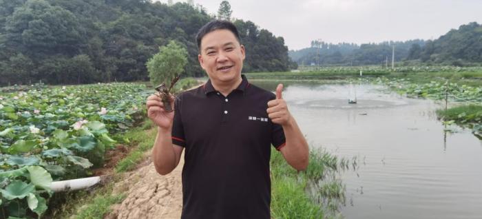 隨著鄉(xiāng)村振興全面推進,鄧述東又開始打造“一畝田脫貧”模式升級版——“深耕一畝田”。2021年年初,鄧述東團隊與企業(yè)合作,在湘潭縣梅林橋現(xiàn)代農業(yè)示范園流轉耕地1100余畝(包含部分魚塘、荷塘),引進廣東一家澳洲青蝦繁育企業(yè),采取“蓮+蝦”“稻+蝦”、水塘“魚+蝦”等模式進行試驗養(yǎng)殖,蝦苗成活率接近100%,成長速度達到預期目標。