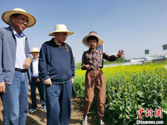 圖為青海省政協(xié)主席公保扎西(中)調研油菜種植?!?zhí)砀?攝