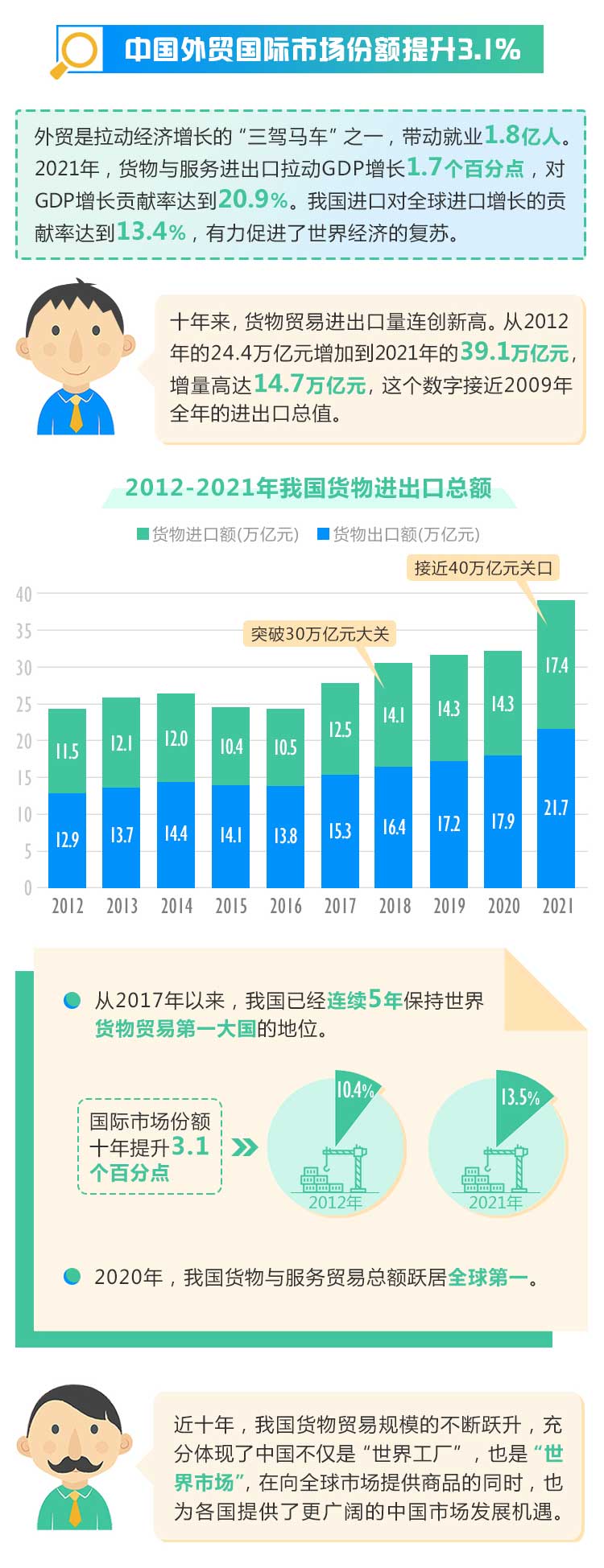 數(shù)說·非凡十年|中國(guó)內(nèi)外貿(mào)“成績(jī)單”搶眼 釋放“雙循環(huán)”活力