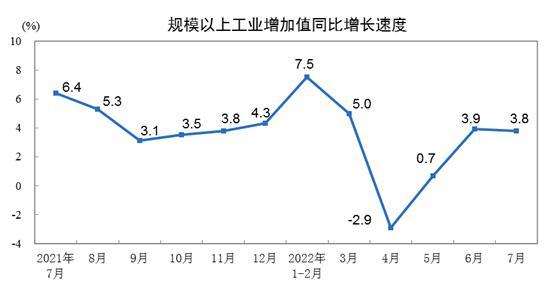 國(guó)家統(tǒng)計(jì)局:7月份規(guī)模以上工業(yè)增加值增長(zhǎng)3.8%