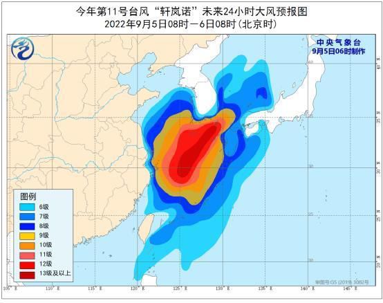 中央氣象臺消息,今年第11號臺風“軒嵐諾”的中心今天(5日)早晨7點鐘位于距離浙江省朱家尖島偏東方向約245公里的東海南部海面上(北緯29.6度、東經(jīng)124.9度),中心附近最大風力有16級(55米/秒),中心最低氣壓為930百帕,七級風圈半徑350-400公里,十級風圈半徑120-150公里,十二級風圈半徑30公里。