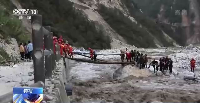 地震發(fā)生后,磨西鎮(zhèn)周邊有多個(gè)村子的人員受傷,5日下午,通往外界的唯一道路被滑坡和塌方阻斷,黨員突擊隊(duì)率先通過(guò)兩根供水管道和三根凌空的鋼索進(jìn)入村子。