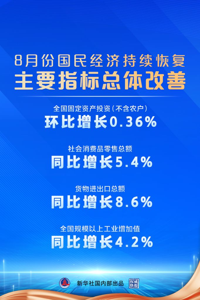 國家統(tǒng)計局:8月份國民經(jīng)濟持續(xù)恢復,主要指標總體改善