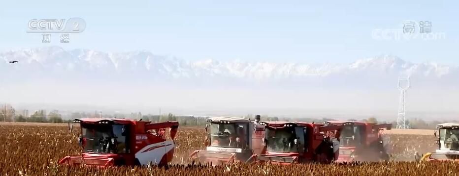 央視網(wǎng)消息:金秋時節(jié),甘肅省張掖市民樂縣的1.2萬畝高粱已經(jīng)成熟了,紅色的高粱和穿梭的聯(lián)合收割機構(gòu)成一幅色彩艷麗的豐收畫卷。