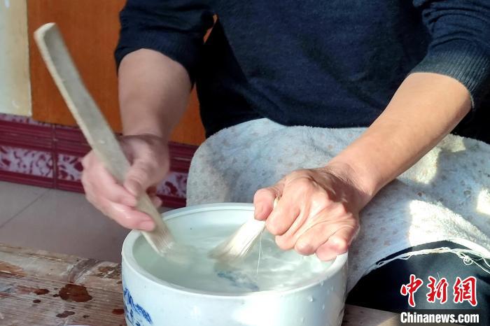在水中反復(fù)梳洗毛筆頭是制筆的重要環(huán)節(jié)?!枪跇?攝