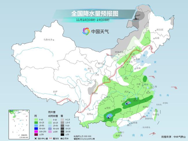 中國(guó)天氣網(wǎng)訊 昨天(11月17日)開(kāi)始,新一股冷空氣自新疆開(kāi)始自西向東逐漸影響我國(guó)其它地區(qū),今明兩天,長(zhǎng)江以北地區(qū)將陸續(xù)迎來(lái)明顯降溫,華北、東北等地還會(huì)有雨雪天氣現(xiàn)身,局地降水猛烈。而在南方,今明兩天,雨水也將繼續(xù)營(yíng)業(yè),20日短暫“調(diào)休”一天,21日至22日,新一輪降雨又將上線,幾乎無(wú)縫銜接。