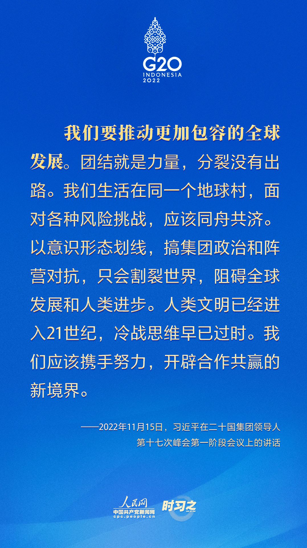當(dāng)?shù)貢r(shí)間11月15日,二十國集團(tuán)領(lǐng)導(dǎo)人第十七次峰會在印度尼西亞巴厘島舉行。國家主席習(xí)近平出席并發(fā)表題為《共迎時(shí)代挑戰(zhàn) 共建美好未來》的重要講話。