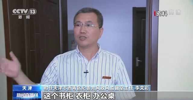時任天津市西青區(qū)紀(jì)委黨風(fēng)政風(fēng)監(jiān)督室主任 李文彩:進來以后我們可以看到,書柜、衣柜、辦公桌跟普通的這個辦公用房是一模一樣的。在勘查的過程當(dāng)中,我們發(fā)現(xiàn)這個衣柜透出一道亮光,我們覺得挺可疑,打開以后里面掛著衣服,這個衣柜沒有了后擋板,直通里間,儼然就是一個暗門。這個里間里邊,床鋪、電視、衣柜、冰箱、衛(wèi)生間、洗浴設(shè)施一應(yīng)俱全的。