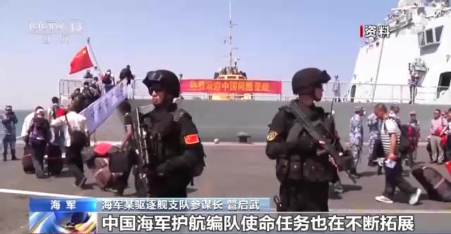 海軍某驅(qū)逐艦支隊參謀長 管啟武:護航過程中,中國海軍護航編隊使命任務(wù)也在不斷拓展。從最初的為中國船舶護航,發(fā)展到為其他國家船舶護航,從遠洋護航,拓展到多樣化非戰(zhàn)爭軍事行動,充分展現(xiàn)了中國負責任大國的擔當,展現(xiàn)了中國軍隊的綜合實力和良好形象。