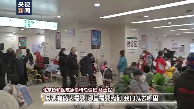 北京協(xié)和醫(yī)院急診科總值班 馬士程:我們的教授主任們都跑到一線來跟我們一起來并肩作戰(zhàn),這對我們來說也是一個(gè)很好的鼓舞,也告訴我們身為大夫不管你是什么樣的職稱和職位,只要有病人需要,哪里需要,我們就去哪里。