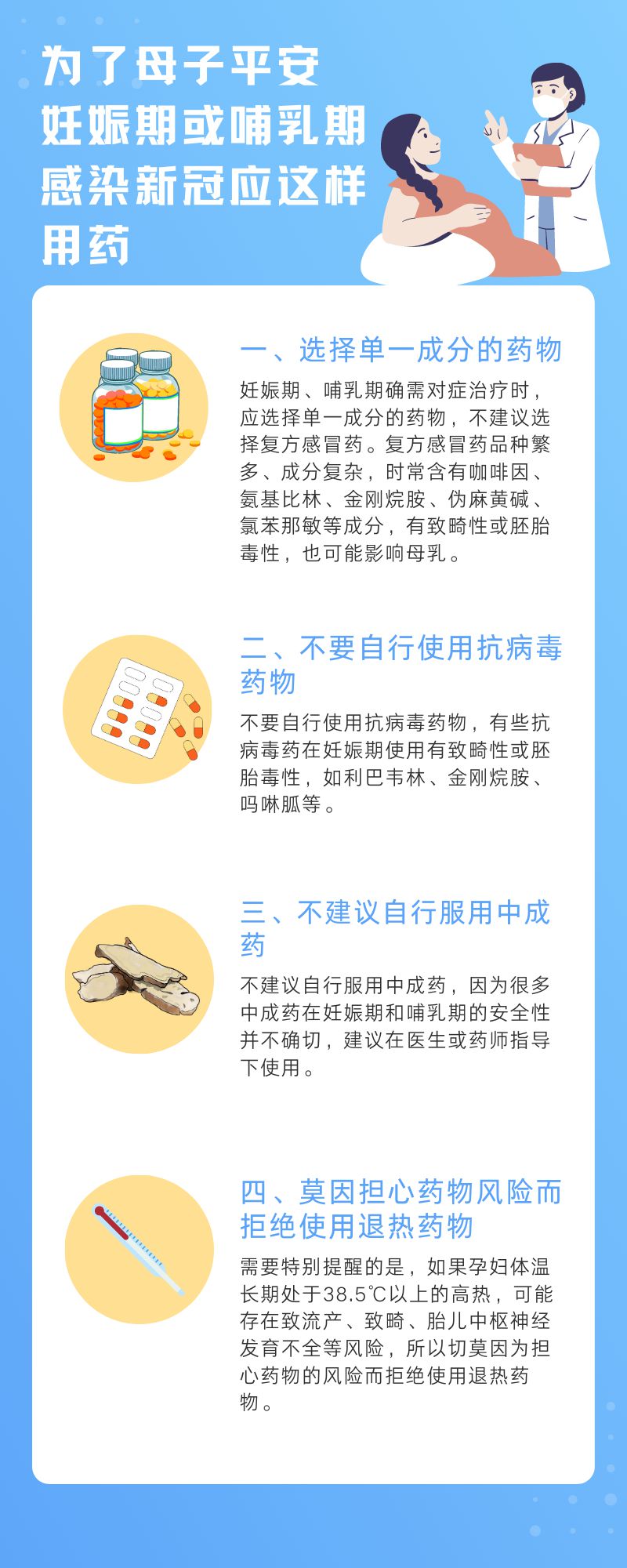 妊娠期、哺乳期的新冠病毒感染者用藥若不科學,可能直接危害寶寶健康,但媽媽們若是“硬扛”著不用藥,高燒等癥狀也會影響胎兒發(fā)育和哺乳。對此,陸軍軍醫(yī)大學陸軍特色醫(yī)學中心藥劑科專家為“準媽媽”和哺乳期媽媽整理出了新冠用藥指南。