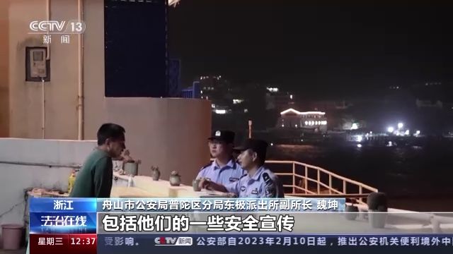 舟山市公安局普陀區(qū)分局東極派出所副所長 魏坤:可能你連吃飯的時(shí)間都要壓縮,第一個(gè)日常巡邏是不間斷的,第二個(gè)就是平常的民宿檢查,對在島的游客,包括他們的一些安全宣傳,我們也要做到位。