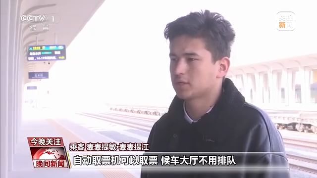 乘客 麥麥提敏 麥麥提江:之前我們來和田都是開車、坐汽車。時(shí)間很長(zhǎng)很累,現(xiàn)在火車通了之后,給我們帶來很多方便,自動(dòng)取票機(jī)可以取票,候車大廳不用排隊(duì)。