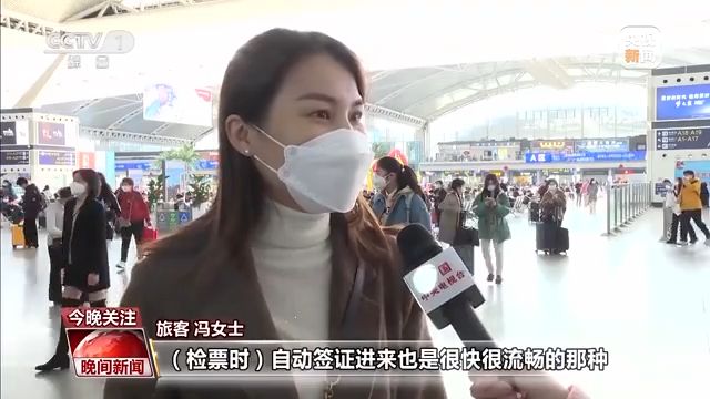 旅客 馮女士:現(xiàn)在方便了很多,檢票時(shí)自動(dòng)簽證進(jìn)來也是很快很流暢的那種,直接拿身份證刷一下就馬上進(jìn)來了,以前還要排很長(zhǎng)的隊(duì)現(xiàn)在不用了,很方便。
