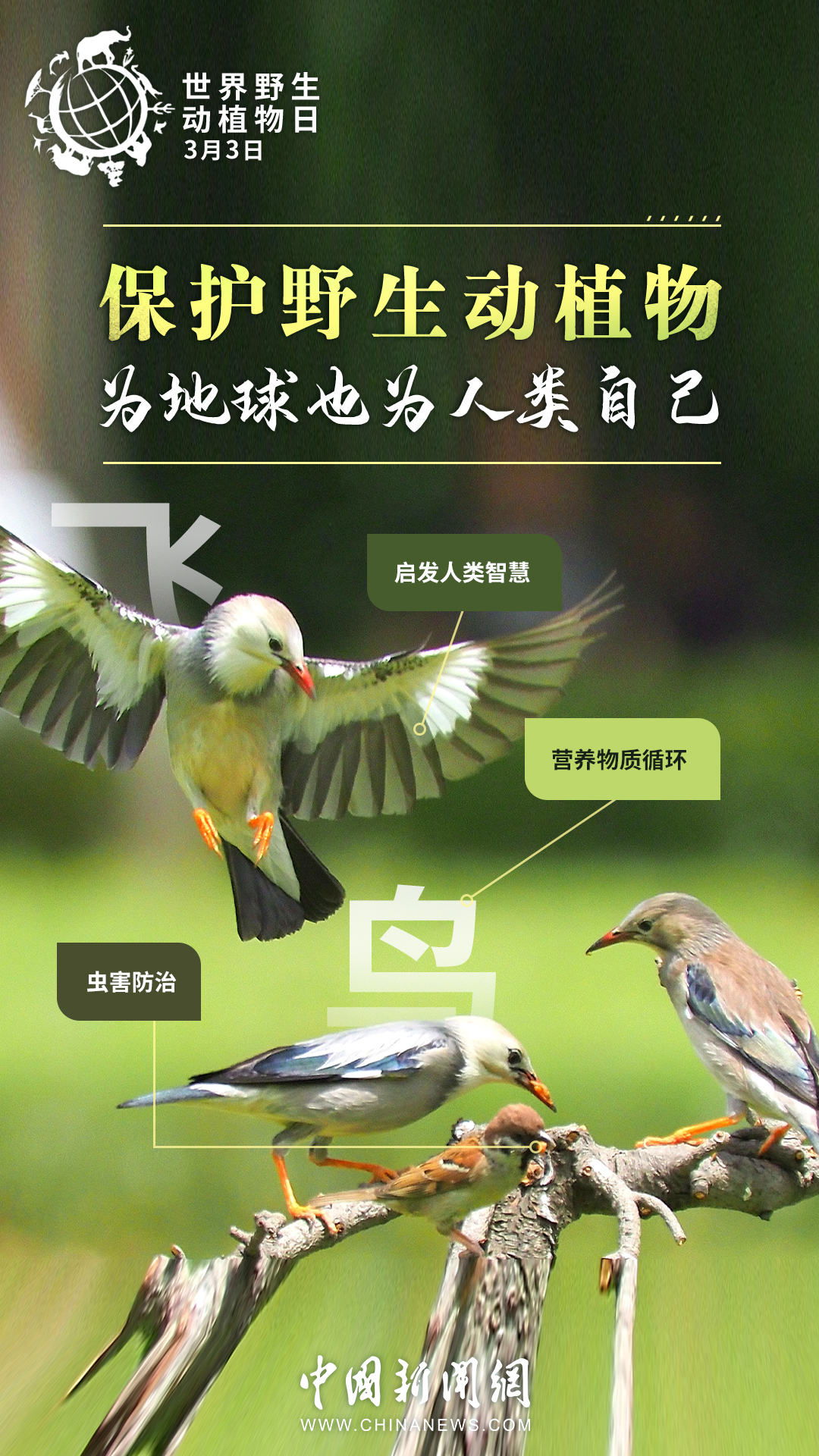 世界約80%的農作物都依賴蜜蜂等蟲媒傳粉,一座鯨的尸體可以供養(yǎng)一套以分解者為主的循環(huán)系統(tǒng)長達百年……其實,大自然里的每種生物都有它存在的價值。今天是第十個“世界野生動植物日”,戳圖了解它們的作用,一起來保護野生動植物。
