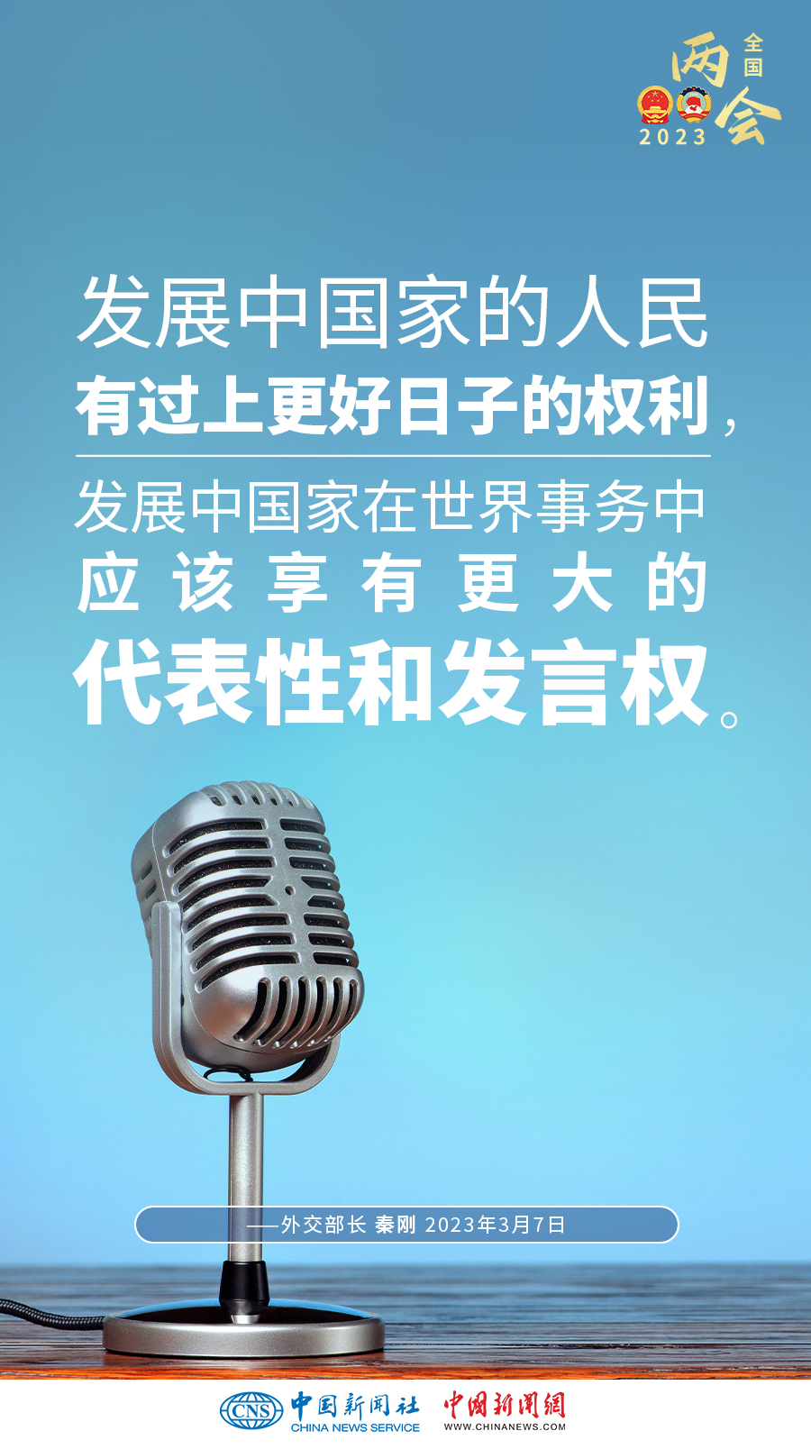 秦剛:發(fā)展中國家占世界人口總數(shù)的80%以上,對世界經(jīng)濟(jì)增長的貢獻(xiàn)率超過70%。發(fā)展中國家的人民有過上更好日子的權(quán)利,發(fā)展中國家在世界事務(wù)中應(yīng)該享有更大的代表性和發(fā)言權(quán)。