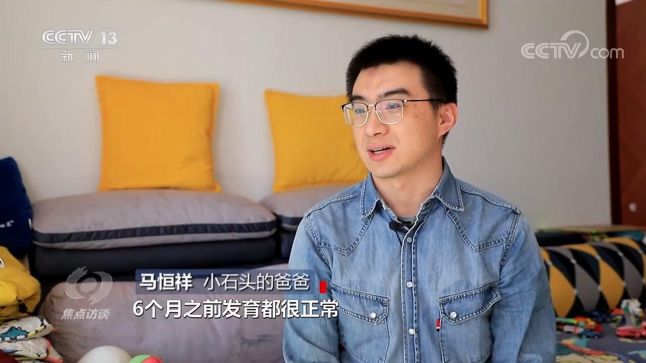 小石頭的爸爸馬恒祥:“6個(gè)月之前發(fā)育都很正常,像抬頭、翻身、坐都沒有問題,但是在8個(gè)月左右的時(shí)候,發(fā)現(xiàn)他的腿在躺著的時(shí)候不會(huì)動(dòng)了,坐也坐不住了。”